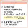 Eyeshadow ini dibuat dari pelbagai bahan termasuk Triethylhexanoin, diisostearyl malate, zinc laurate, hydrogenated castor oil isostearate, sorbitan stearate, squalane, dimethicone, tocopherol, methylparaben, gunjo, bedak, mika, emas, titanium oksida, dan oksida besi. Bahan-bahan ini bekerjasama untuk menyediakan eyeshadow yang kaya dan lembap yang bercampur baik dengan kulit.