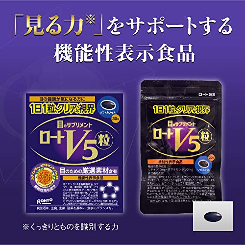 Produk ini dimaksudkan untuk mengekalkan kuasa penglihatan (kemampuan untuk melihat objek dengan jelas dengan mata) adalah penting untuk mempunyai diet seimbang setiap hari. Rohto V 5 biji" mengandungi bahan-bahan yang dipilih dengan teliti untuk mata seperti lutein dan zeaxanthin yang menyokong pemeliharaan kuasa untuk melihat (kemampuan untuk melihat objek dengan jelas dengan mata). Disarankan untuk mereka yang bimbang tentang kesihatan mata mereka selamanya. Produk ini mengandungi lutein dan zeaxanthin. Lutein zeaxanthin telah dilaporkan menyokong pemeliharaan kemampuan untuk melihat.