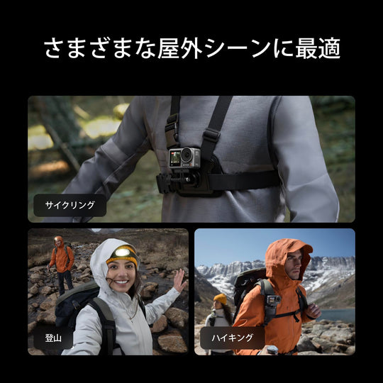 Dubbele aanraakschermen met een waterafstotende coating maken het eenvoudig om selfies te nemen en instellingen te wijzigen zelfs met natte handen, en tonen duidelijke beelden. De Osmo Action 3 Outdoor Combo bevat batterijen (2), een borstbandhouder, een rugzakbandhouder en meer, wat ideaal is voor handsfree 4K-opnames tijdens buitenactiviteiten zoals wandelen, fietsen en bergbeklimmen.