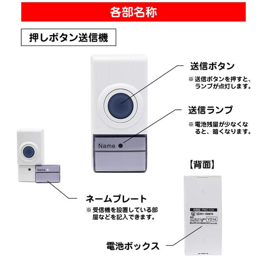 ELPA Draadloze Deurbel Zorgoproep PWC-100 - Compact en Draagbaar