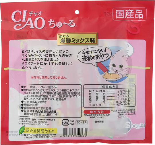 INABA CIAO Churu Tonijn Zeevruchten Gemengde Smaak 14g x 20 Katten