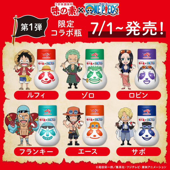 Dit unieke kruidenmengsel is gemaakt van aminozuren (glutaminezuur), het belangrijkste bestanddeel dat verantwoordelijk is voor de "umami van kelp." Het is ontworpen om de smaak van een breed scala aan gerechten te verbeteren, van de eerste stappen in de voedselbereiding tot de laatste afwerking, waardoor maaltijden moeiteloos lekkerder worden. Dit product maakt deel uit van een speciale, beperkte samenwerking ter viering van het 25-jarig jubileum van de anime ONE PIECE. De collectie bevat tot zes verschillende flesjes, elk versierd met een willekeurig karakterontwerp uit de serie.