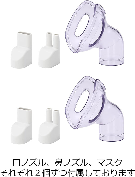 - Inclusief neusstuk voor verwarming en bevochtiging van de neus, mondstuk voor de keel en masker voor een breder bereik van keel- en neusbedekking