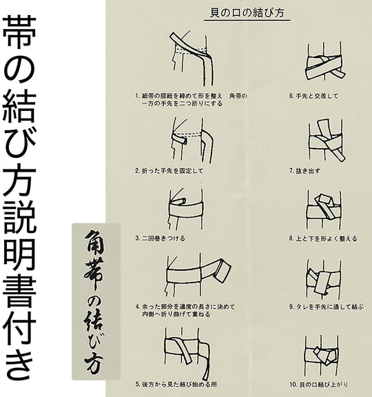 Deze kaku obi is ideaal om te combineren met traditionele Japanse kleding zoals kimono's en yukata's. De bijgevoegde handleiding helpt gebruikers eenvoudig de kai-no-kuchi knoop te leggen, een populaire en veilige manier om de obi vast te maken.