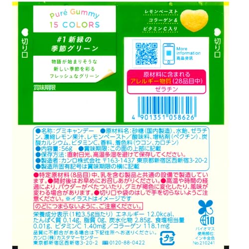 Kanro Pure Gummy Citroen 56g Verpakking van 6, Zoet en Zuur, Vijf Kleuren