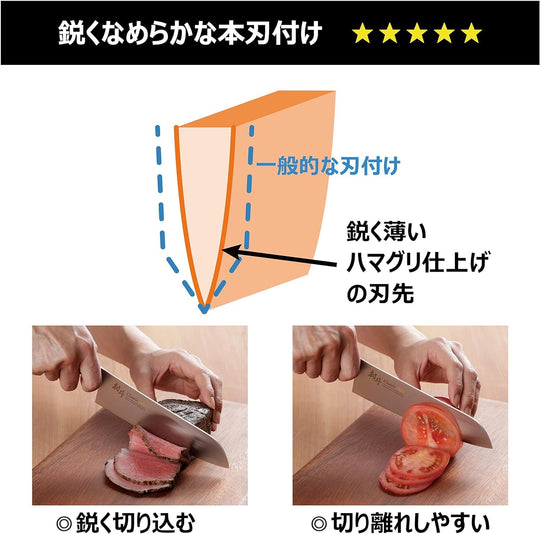 Het naadloos uit één stuk gegoten handvat is zowel duurzaam als hygiënisch en ligt prettig in de hand. De FD-laklaag geeft het handvat de uitstraling en textuur van traditioneel Japans lakwerk. Dit product wordt vervaardigd in Sanjo, in de prefectuur Niigata, een stad die bekendstaat om haar hoogwaardige messenambacht.