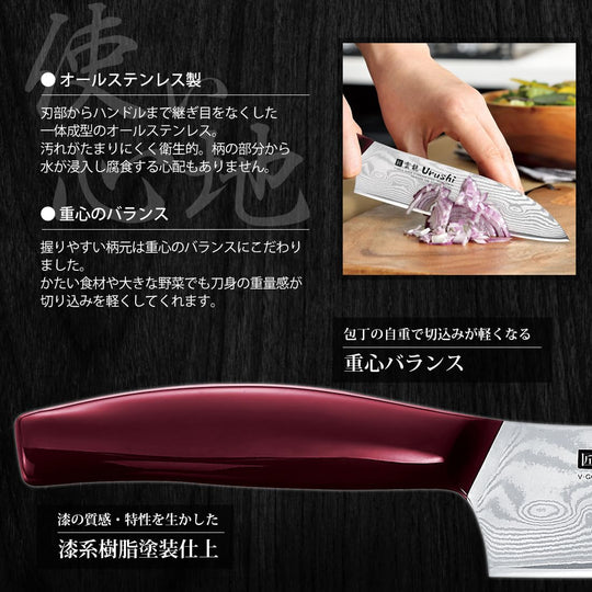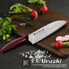 UN-RYU Damascus Santoku mes 165mm Handgepolijst Urushi UNR-201 Wijnrood Japan