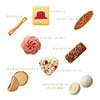 Ingrediënten: Tarwebloem (gemaakt in Japan), chocolade, boter, suiker, vloeibaar ei, amandelen, poedersuiker, shortening, margarine, moutstroop, room, zetmeel, honing, wafels (tarwebloem, kleverige bloem, wasachtig maïszetmeel, etc.), fiantine (tarwebloem, suiker, glucose, fructose, shortening, boter, etc.), chocoladespread B, siroop, gedroogde aardbeiproducten, dextrine, oligosacchariden, eetbare oliën en vetten, volledige melkpoeder, gedroogd eiwit, etc.) Fructose glucose, shortening, boter, andere), chocoladespread B, siroop, gedroogde aardbeien, dextrine, oligosacchariden, eetbare oliën en vetten, volle melkpoeder, gedroogd eiwit, voedingsmiddelen met melk of zuivelproducten als belangrijkste grondstoffen, cacaoboter, zout, citroensap, pistachenoten, pompoenpoeder, frambozenchips, magere bloem Frambozenchips, magere melkpoeder, lactose, isomere suiker gemengd met suiker/trehalose, verwerkt zetmeel, emulgator, smaak, kleur (rode biet, karamel, annatto, caroteen), zuurteregelaar, vitamine C, rijsmiddel, polysacharide verdikkingsmiddel, antioxidant (vitamine E), (bevat tarwe, ei, melk ingrediënten, amandel, soja) Amandelen, sojabonen)