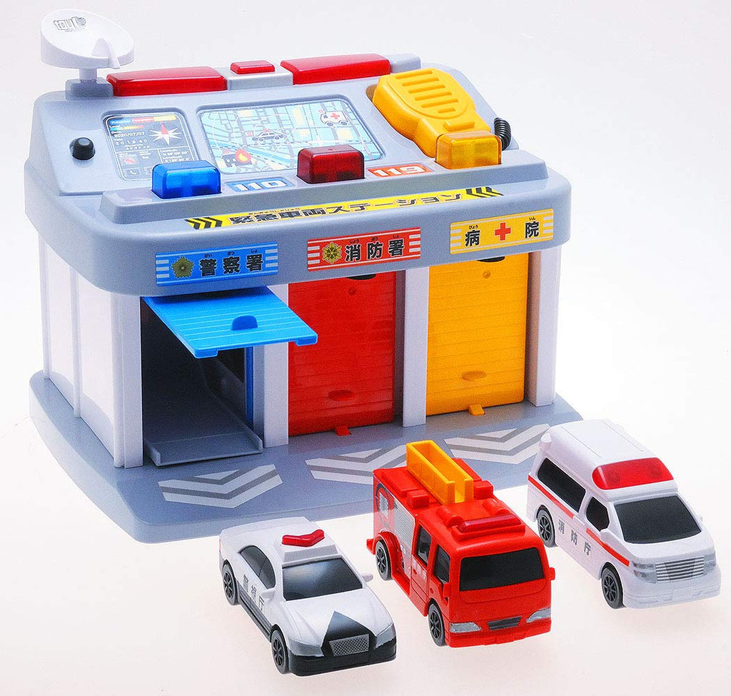Actierijke noodhulp-speelset: druk op de uitrukknop om de deuren te openen, terwijl een mini-auto synchroon met een realistische sirene naar buiten schiet en de waarschuwingslichten bij elk geluid knipperen....