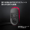 The mouse features PTFE mouse feet for enhanced glide, with an expanded area of polytetrafluoroethylene (PTFE) material to ensure a smooth glide. Additionally, included adhesive grip tape can be used to enhance the grip of the mouse.