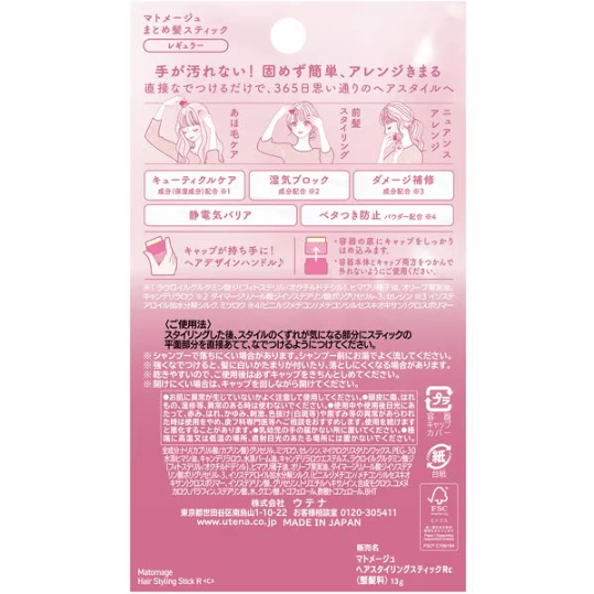 O Bastão de Estilo para Cabelo Utena Matomage é uma cera tipo bastão única, projetada para fornecer uma solução rápida e fácil para o penteado do cabelo. Este produto permite que você aplique a cera diretamente em seu cabelo, ajudando a obter aquele visual perfeito e despojado. É uma ferramenta conveniente e eficiente para aqueles que desejam manter uma aparência moderna sem gastar muito tempo com a modelagem do cabelo.
