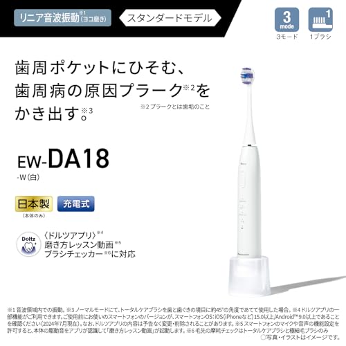 Esta escova de dentes avançada foi projetada para remover eficazmente a placa, principal causadora das doenças periodontais, dos bolsões periodontais. Utilizando vibrações sônicas lineares de aproximadamente 31.000 movimentos por minuto na direção horizontal, ela permite uma limpeza profunda entre os dentes e as gengivas, conforme recomendado pelos dentistas através do método de banho e método de esfregação. A escova promove gengivas mais saudáveis em cerca de 3 dias quando utilizada com a Escova Total Care ou Escova com Cerdas Ultra Finas (Compacta) no Modo Normal, segundo nossa pesquisa. O efeito de uso pode variar dependendo das condições individuais.