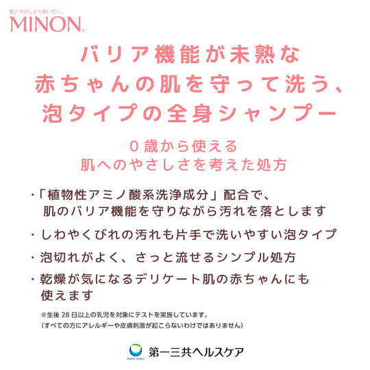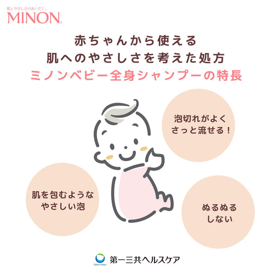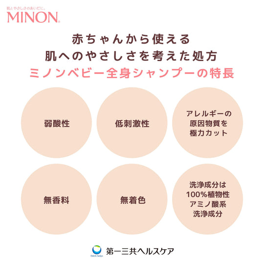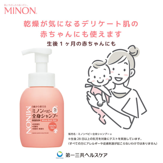 O Minon Baby Full Body Shampoo é um limpador suave e hidratante, desenvolvido especialmente para a pele delicada de bebês e crianças pequenas. Criado com foco em minimizar problemas de pele causados por alergias a cosméticos, este shampoo é formulado com ingredientes de limpeza derivados de aminoácidos, 100% à base de vegetais. Sua fórmula suave e levemente ácida ajuda a proteger a barreira natural da pele, garantindo a retenção de umidade enquanto remove eficazmente sujeiras e impurezas. O produto é livre de fragrâncias, corantes e contém substâncias alergênicas mínimas, sendo ideal para peles sensíveis e secas. O dispensador de espuma permite um uso fácil com uma mão, tornando o banho mais prático para os pais. Indicado para bebês com mais de 28 dias, o Minon Baby Full Body Shampoo deixa a pele macia, suave e hidratada, sem resíduos oleosos.