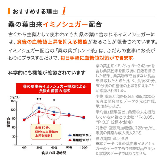 1. **Contém Iminoaçúcar Derivado de Folhas de Amora**: Iminoaçúcar, encontrado nas folhas de amora que são usadas como medicina herbal desde tempos antigos, tem se mostrado eficaz em suprimir o aumento dos níveis de açúcar no sangue após as refeições. O Chá Misto de Folha de Amora, contendo iminoaçúcar, pode ser facilmente incorporado à sua rotina diária como um chá para ajudar a prevenir picos de glicose no sangue.