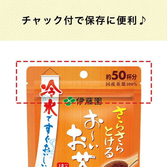 Experimente a praticidade e o aroma delicioso do Hojicha Instantâneo, um chá verde torrado de primeira qualidade que se dissolve facilmente tanto em água fria quanto quente. Feito a partir de chá verde de primeira classe, este chá instantâneo permite que você desfrute dos sabores sutis do hojicha sem o incômodo dos resíduos de chá, garantindo um preparo limpo e fácil. Cada embalagem com fecho de zíper contém chá suficiente para preparar aproximadamente 50 xícaras, tornando-o econômico e fácil de armazenar.