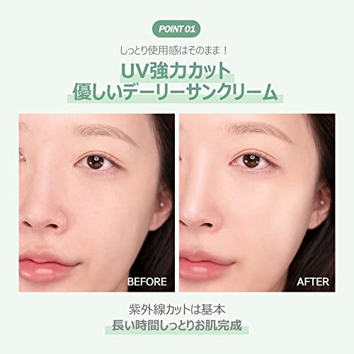 Este produto é um gel leve e não pegajoso que forma uma camada de filtro solar na sua pele. Ele proporciona uma sensação refrescante e suave, com alta taxa de satisfação dos clientes. O gel não só protege a sua pele dos raios UV prejudiciais com sua poderosa cobertura SPF50+PA++++, mas também melhora a aderência da sua base, eliminando flocos brancos e imperfeições. Ele hidrata profundamente a pele, combatendo a secura de dentro para fora. O produto é livre de 8 ingredientes nocivos e foi testado para irritação na pele. Contém água de folha de Camellia japonica, que refresca e protege a sua pele de fatores ambientais externos, mantendo-a saudável.