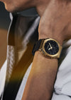 Nascido da busca pela robustez, G-SHOCK apresenta um modelo com cobertura de metal em preto clássico, com aro metálico com revestimento IP dourado, construído sobre a plataforma octogonal GM-2100. A paleta refinada em preto e dourado oferece um estilo versátil e marcante para trabalho, viagens e fins de semana.