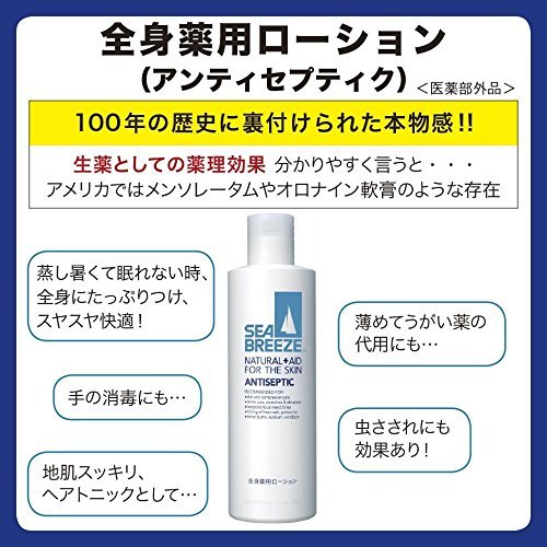 Loção Medicinal Corporal Sea Breeze 230ml é uma loção corporal versátil e medicamentosa projetada para limpar, tonificar e rejuvenescer a pele. Infundida com mentol e uma mistura de ingredientes naturais de plantas, incluindo óleos de hortelã-pimenta e eucalipto, esta loção proporciona um efeito refrescante e adstringente no corpo. Ideal para uso após o barbear, esportes ou um banho, ajuda a refrescar e revigorar a pele. Como um produto quase-medicinal, também oferece benefícios terapêuticos para melhorar a saúde da pele.