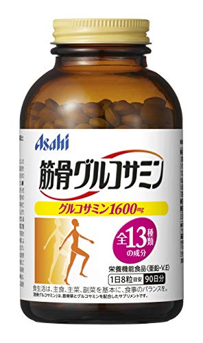 Suplemento de Glucosamina Produtos de AsahiAs doses diárias de oito comprimidos fornecem 1600 mg de glucosamina. Contém "myosinosus", para o qual uma pesquisa funcional foi realizada em conjunto com uma universidade. Além do musculospermum, 12 ingredientes incluindo condroitina, ácido hialurônico e colágeno de baixo peso molecular são adicionados. Baseado no conceito de engenharia sensorial do Instituto de Pesquisa Asahi, o produto é feito em 8 comprimidos fáceis de engolir por dia.