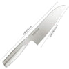 Esta faca possui um cabo de aço inoxidável projetado com curvas suaves para um toque delicado nas mãos. A lâmina e o cabo são integrados em uma única peça, facilitando a limpeza e a manutenção. O design contínuo garante que nenhum resíduo possa ficar preso, aumentando suas propriedades higiênicas. Além disso, é segura para lavar na máquina de lavar louça, proporcionando conveniência adicional.