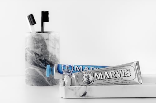A pasta de dente MARVIS é um produto premium para cuidados dentários da República Italiana. Oferece uma fragrância refrescante de menta que perdura, mantendo seu hálito fresco por um longo período. A escovação regular com esta pasta de dente não só remove a placa bacteriana como também produz um efeito clareador, criando um belo sorriso.