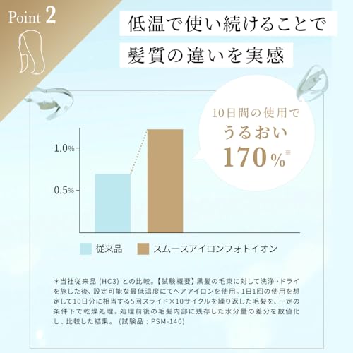 Ощутите более прямые и блестящие волосы с инновационным утюжком, сохраняющим влагу. Разработанный для минимизации теплового повреждения и поддержания увлажненности, этот утюжок оснащен высокоэффективным нагревателем и уникальным дизайном пластин, позволяющим создавать разнообразные укладки. Ионные электроды на обоих концах пластины используют импульсную волну, вдохновленную технологиями для лица, обеспечивая оптимальное здоровье волос. Дизайн также включает продуманные линии разреза для выпуска вредного водяного пара, что приводит к идеальным блестящим волосам.