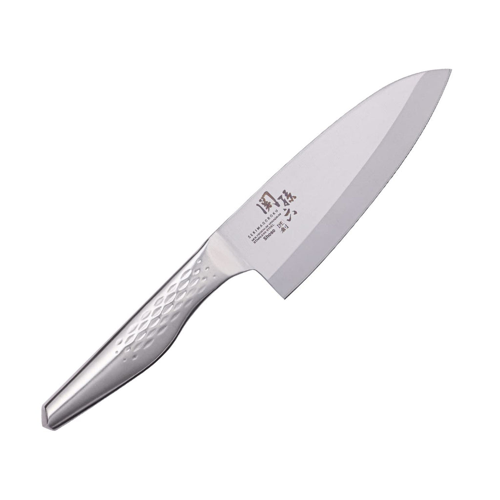 Сантоку Sekisoroku 10000CL 165 мм #000AE5254 KAI — это универсальный кухонный нож из Японии, предназначенный для различных кулинарных задач, таких как нарезка овощей, нарезка мяса, и филейка рыбы. Нож оснащен ...
