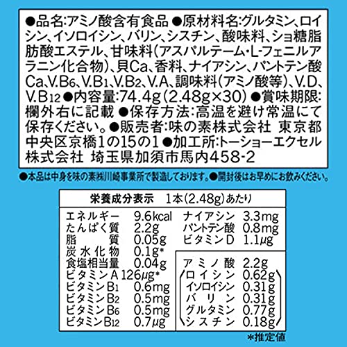 Ингредиенты включают Глютамин, Лейцин, Изолейцин, Валин, Цистин, кислоту-регулятор, Эфир сахарного жирного кислоты, Подсластитель (Aspartame L-Phenylalanine Compound), морепродукты Ca, Ароматизатор, Ниацин, Кальция пантотенат, В.В6, В.В1, В.В2, В.А, Усилитель вкуса (Amino Acid и т. д.), В.Д и В.В12.