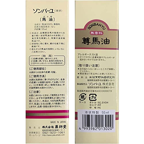 Этот масляный продукт санбалу, происходящий из Японии, является высококачественным средством для ухода за кожей, созданным исключительно из жидкой части конского жира, известного своей легкой удельной плотностью. Он выделяется своей способностью эффективно проникать через кератин без оставления липкого остатка, что делает его идеальным выбором в качестве основы под макияж или для улучшения здоровья кожи, особенно в летние месяцы. Его непарфюмированная жидкая форма предназначена для увлажнения кожи, предотвращения шершавости и защиты от солнечных пятен и веснушек, способствующей более здоровому цвету лица.