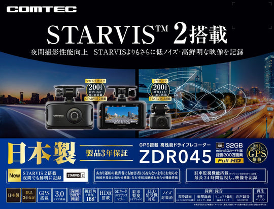 Модель ZDR045 — это продвинутый видеорегистратор от Comtech, созданный для улучшения вашего опыта вождения благодаря превосходной работе в ночное время. Обе камеры, передняя и задняя, оснащены технологией STARVIS2, обеспечивающей низкий уровень шума и высокое разрешение изображений даже в условиях слабого освещения. Камеры имеют широкоугольный объектив с диагональным углом обзора 168°, что позволяет захватывать обширную область вокруг вашего автомобиля.
