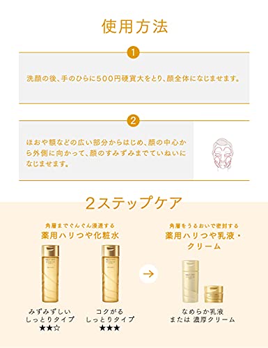 После умывания нанесите на ладонь количество лосьона, равное размеру монеты в 500 иен, и распределите по всему лицу. Начинайте с больших участков, таких как щеки и лоб, двигаясь от центра лица к краям.
