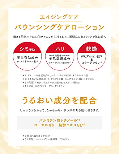 В состав укрепляющего медикаментозного лосьона входят активные компоненты, такие как транексамовая кислота, а также другие ингредиенты: очищенная вода, дипропиленгликоль, концентрированный глицерин, этанол, полиэтиленгликоль 1500, полиоксиэтилен (14) полиоксипропилен (7) диметиловый эфир, 1,3-бутиленгликоль, диглицерин, полиоксиэтилен полиоксипропилен децилтетрадециловый эфир, гидроксиэтилцеллюлоза, цитрат натрия, лимонная кислота, динатриевый эдетат, жидкость ферментации королевского желе, пирофосфат натрия, D-глутамовая кислота, DL-аланин, ацетилированный гиалуронат натрия, гиалуронат натрия(2), пальмитат ретинола, кукурузное масло, DL-метионин, водорастворимый коллаген(F), феноксиэтанол, параоксибензоат и ароматизатор.