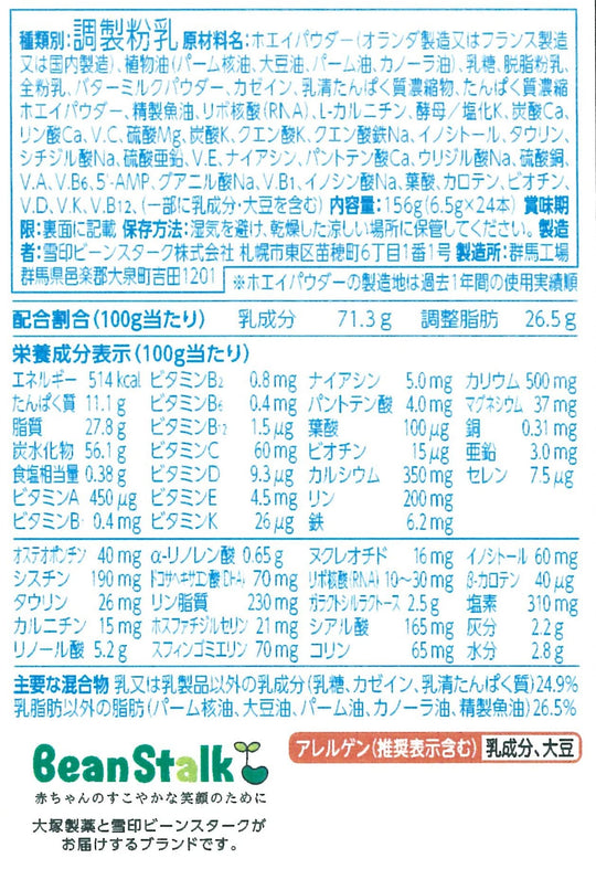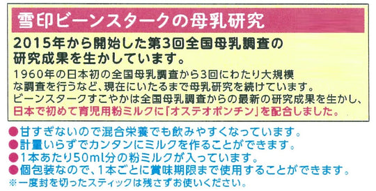 Эта порошковая формула разработана для поддержки питательных потребностей младенцев, основываясь на последних данных "Третьего национального опроса по грудному вскармливанию", начатого в 2015 году. Она содержит остеопонтин в диапазоне, характерном для японского грудного молока. Формула обогащена ингредиентами, которые помогают защищать грудное молоко, такими как сиаловая кислота, олигосахариды грудного молока (галактозиллактоза), рибонуклеиновая кислота, нуклеотиды и сфингомиелин. Также она содержит необходимые для развития младенцев питательные вещества, включая DHA, таурин, карнитин и кальций. Эти компоненты особенно важны, так как DHA и железо обычно трудно получить из коровьего молока, а кальция часто не хватает в детском питании. Формула обеспечивает младенцев защитными свойствами грудного молока благодаря сиаловой кислоте и олигосахаридам (галактозиллактоза).