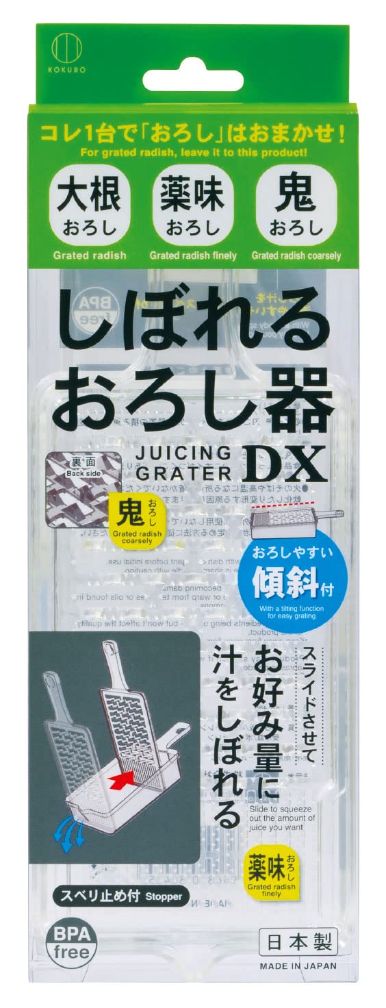 Kokubo Kogyoshos "Shibiruaru Grater DX" är ett innovativt köksredskap för att enkelt riva daikon och andra rättikor samtidigt som vätskan smidigt pressas ut.