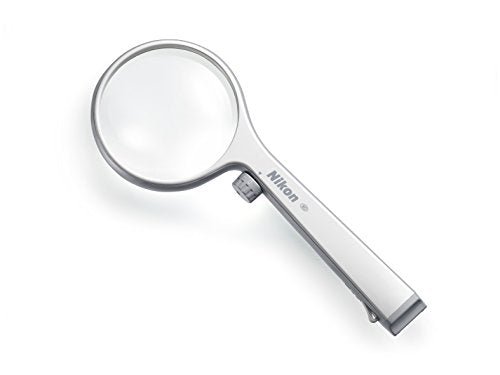 Detta innovativa förstoringsglas har högpresterande vita LED-lampor som belyser ett stort område med naturliga färger och förbättrar din läsupplevelse i mörka miljöer. Det innehåller Nikons unika asfäriska de...