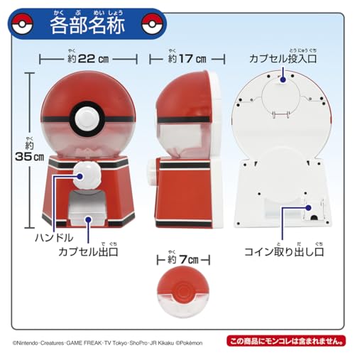 - Mått: Höjd ca 35 cm, Bredd ca 22 cm, Djup ca 17 cm - Kapseldiameter: Ca 7 cm - Innehåll: - Gacha-maskin x 1 - Kapslar x 6 - Mynt x 10 - Stand POP-ark x 1 - Pokémon Gacha Machine-etikett x 1 - Inga batterier krävs