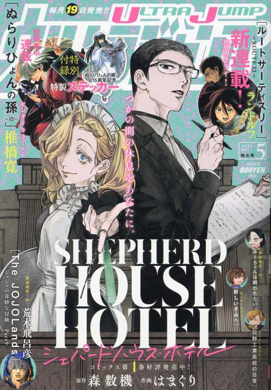 Månadens verkNy serie, öppningsfärgRoot Thirty ThreeRandolphOmslagShepherd House HotelOriginalberättelse av Mori Kazuki, illustrationer av HamaguriKoharu Aizawa har bråttom att döav Omi HuwaraJojo's Bizarre Adventure: Crazy D (...