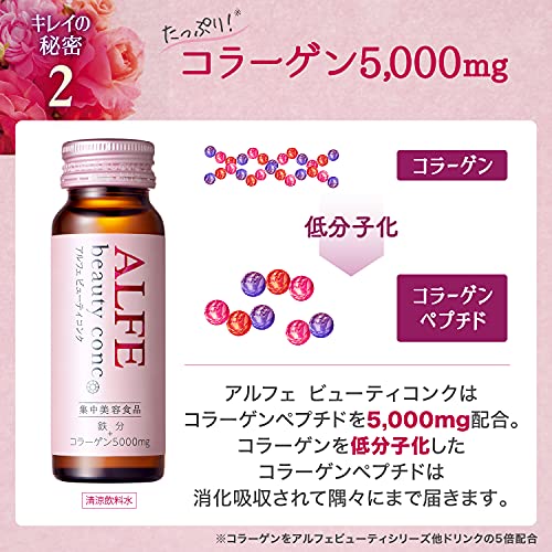 Fokuserar på järn och kollagen, samt fyra skönhetsingredienser i en enda flaska. Intensiv skönhetsnäring för dig som vill stråla. Alphe Beauty Conk är en intensiv skönhetsnäring som använder teknologi från den medicinska serien. Den kombinerar järn och kollagen och koncentrerar även elastin, hyaluronsyra, vitamin B2 och vitamin B6, ingredienser som stödjer skönhet, i en enda flaska. Kollagenet är ett exklusivt 5000 mg lågmolekylärt, högkvalitativt kollagen.