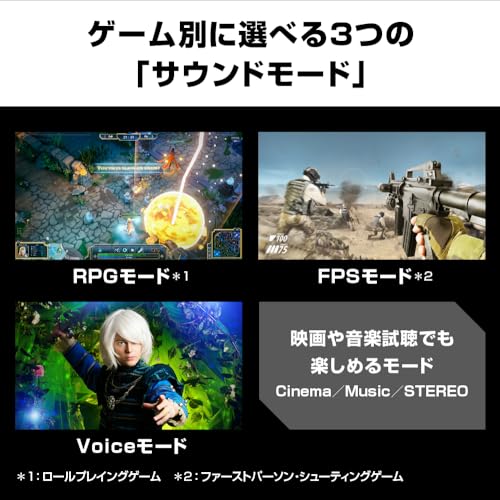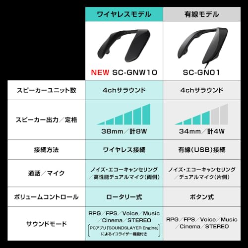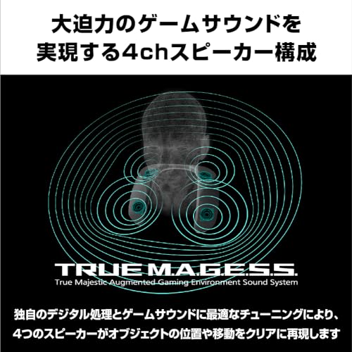 Denna produkt erbjuder en omslutande spelupplevelse med sitt inbyggda basljud och ljudtryck, samt förbättrad ljudlokalisering. Den har en 4-kanals högtalarkonfiguration och en helt omkonstruerad högtalarstruktur jämfört med den tidigare modellen (SC-GN01). Högtalarspringan har ökats från 34mm till 38mm för att förstärka ljudtrycket, särskilt i mellan-låga registret. Den unika ljudsignalsbehandlingen förbättrar ytterligare lokaliseringsförmågan för en mer realistisk spelupplevelse.