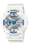 Product Description The G-SHOCK HIDDEN GLOW SERIES watch showcases human potential with glow-in-the-dark parts. It features a white and blue design inspired by summer seas, with a luminous blue face...