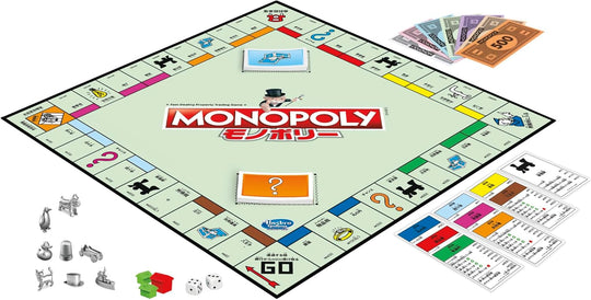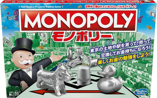 Upplev det klassiska brädspelet Monopoly med en Tokyo-tvist! Den här utgåvan har fastigheter uppkallade efter kända platser i Tokyo som Ginza, Harajuku och Shibuya Station. Köp, sälj och byt fastigheter strategiskt för att bli den rikaste spelaren. Välj mellan åtta unika spelpjäser, inklusive en tyrannosaurus och en pingvin, och ta dig runt på spelplanen genom att slå tärningarna. Använd chans- och allmänningskort för att påverka spelets utgång. Perfekt för familjeträffar och pedagogisk lek, den här japanskspråkiga utgåvan är avsedd för spelare från 8 år.