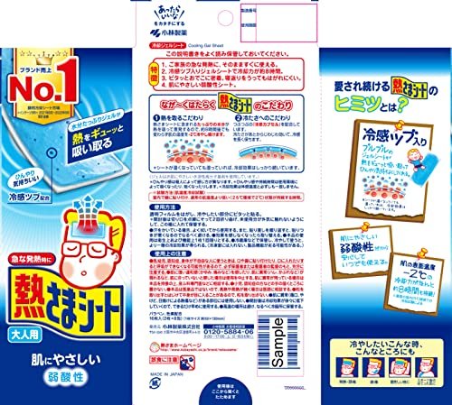 Denna produkt är ett kylplåster som är avsett för omedelbar användning vid plötsliga febertillstånd inom familjen. Kylplåstret är utrustat med kylflikar och är rikligt fuktat för att absorbera värme, vilket ger en sval och behaglig känsla. Det fäster tätt mot pannan så att det inte lossnar lätt, även när man vänder sig i sängen. Varje plåster ger en kylande effekt som varar i ungefär 8 timmar, baserat på vårt test av kylning av hudtemperaturen. Plåstret är svagt surt, vilket gör det skonsamt mot huden.