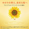Produkten är formulerad med Premium Himawari-olje EX, som hjälper till att behålla lipider och fukt, reparera skador och öka elasticiteten. Den är avsedd att kontrollera hårdeformationer, vågighet, friss och torrhet, vilket minskar spridning och lämnar håret återfuktat och hanterbart. Produkten har också en behaglig, elegant blommig doft med värme och genomskinlighet.