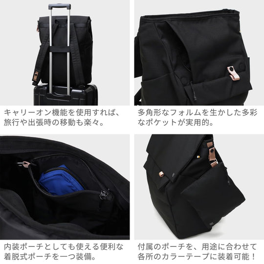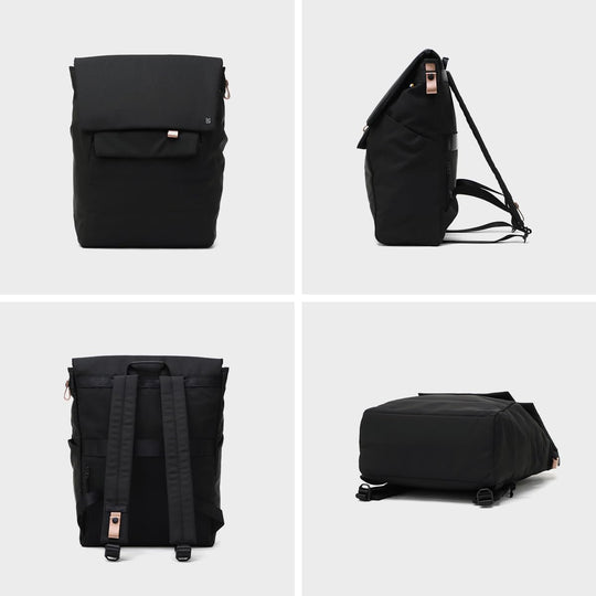 Denna geometriskt designade ryggsäck med flik är inspirerad av urban arkitektur och har en modern, kantig siluett med en funktionell dubbel flikkonstruktion. Dess tredimensionella form, skapad genom att kombinera polygonala former, ger inte bara ett unikt utseende utan ökar också förvaringskapaciteten. Ryggsäcken är smart organiserad med flera fickor, vilket gör det enkelt att hålla dina tillhörigheter prydligt ordnade och lättillgängliga. En vadderad innerficka håller bärbara datorer upp till 15 tum säkert på plats, medan en avtagbar väska erbjuder mångsidiga förvaringsalternativ och kan användas som antingen ett internt fack eller en extern accessoar. Ryggsäcken finns i Svart, Ljusgrå och Mörkgrå och är tillverkad av slitstark polyester med en magnetisk stängning för extra bekvämlighet.