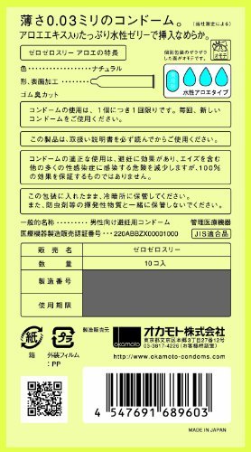medicinteknisk produkt Medicinteknisk certifiering (godkännande) Tunn! Mjuk! Hållbar! Ursprungsland: Japan Tunn! Uppnådde en tunnhet på 0,03 mm med vår unika teknologi. Kroppstemperaturen överförs lätt och det känns som att inte använda något. Mjuk! Materialet är mjukt och töjbart för en naturlig passform. Känslan är som bar hud! Hållbar! Vi forskar och utvecklar ständigt produkter för att göra dem starkare och mer tillförlitliga. Du kommer att bli förvånad över hur tunn den är när du rör vid den och tar på den! Vattenbaserat glidmedel med aloeextrakt för smidig insättning. Skonsam mot kvinnor!