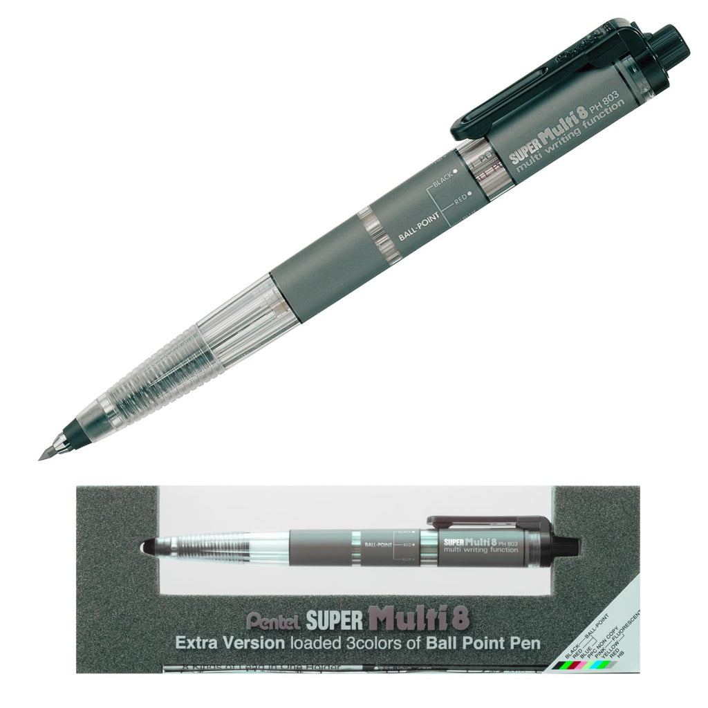Super Multi 8 är en mångsidig multifunktionspenna med åtta olika typer av stift i en slank design. Den lättlästa markeringen gör den idealisk för planering och anteckningar, medan den stilrena siluetten hålle...