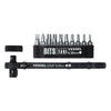 Kompakt 10-delars bitsats med lågprofilspärr. Bitsen har 1/4 tum (6,35 mm) sexkantsfäste, är genomhärdade och tillverkade av kromvanadinstål. Kompatibla med säkerhets-Torx-skruvar.