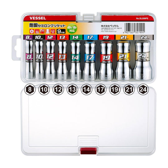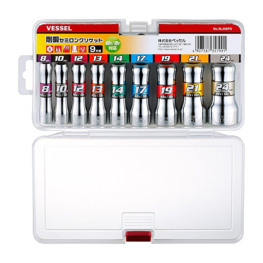 เวสเซล ชุดบล็อกกึ่งยาว 9 ชิ้น สำหรับเครื่องมือไฟฟ้า SL209PS
