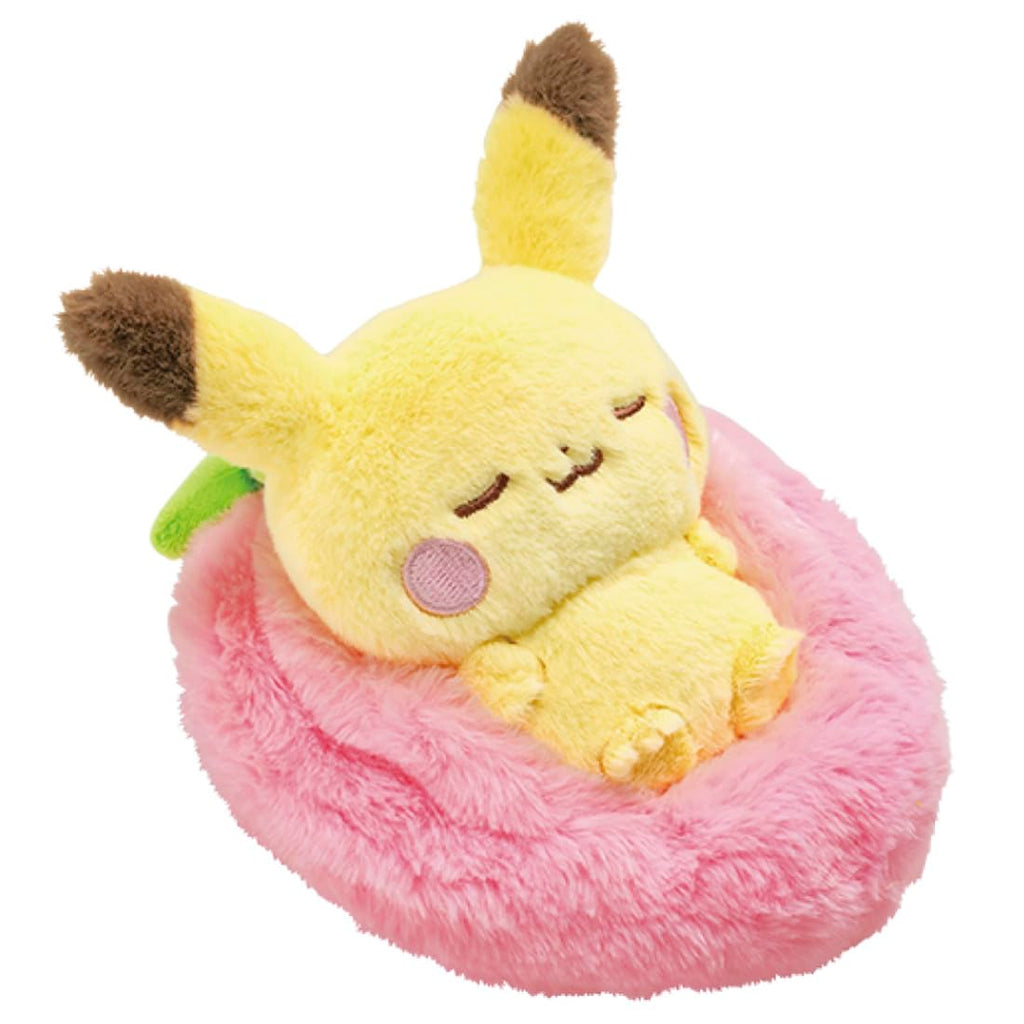 ตุ๊กตาโปเกมอนลิขสิทธิ์แท้จากซีรีส์ Poke Peace: ตุ๊กตา Sleepy Fruits ที่มีพิคาชูนอนงีบบนสตรอว์เบอร์รี่ เนื้อนุ่ม กอดเพลิน พร้อมวางโชว์—ไม่ต้องใช้แบตเตอรี่