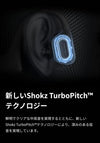 - Shokz TurboPitch Technology: เทคโนโลยีการนำทางทางกระดูกรุ่นที่ 9 สำหรับเสียงที่ชัดในช่วงกลาง, ขนานสูง, และเบสที่ลึกซึ้ง
